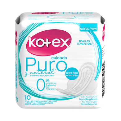 TOALLAS SANITARIAS KOTEX PURO Y NATURAL 10 UND