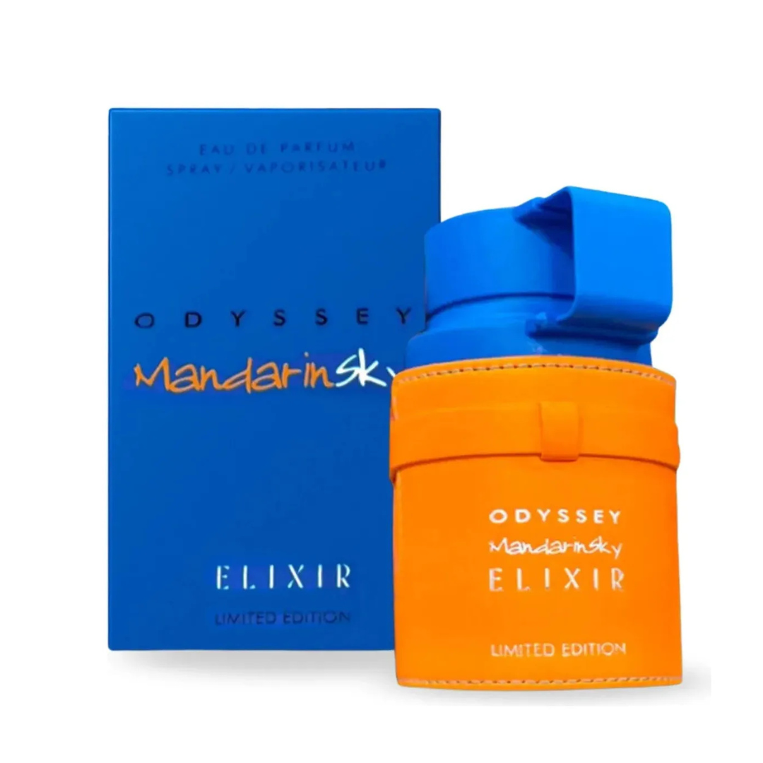 Odyssey Mandarin Sky Elixir de Armaf es una fragancia de la familia olfativa Oriental Amaderada para Hombres y Mujeres. Esta fragrancia es nueva. Odyssey Mandarin Sky Elixir se lanzó en 2025. Las Notas de Salida son mandarina, naranja, lavanda, cardamomo y pimienta negra; las Notas de Corazón son caramelo, haba tonka, pachulí y incienso; las Notas de Fondo son vainilla y vetiver.